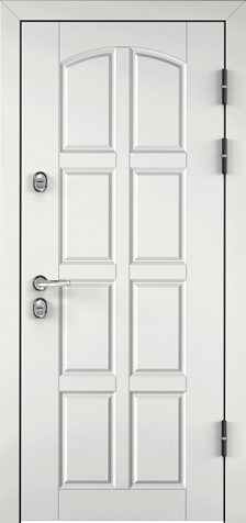 Железная входная дверь в частный дом софт белого цвета №1 — это стильное и практичное решение для вашего дома. Она идеально впишется в любой интерьер благодаря элегантному белому цвету и высококачественной отделке. Внешняя поверхность двери покрыта порошковым термонапылением, которое придает ей устойчивость к внешним воздействиям и повреждениям. Внутреннее покрытие выполнено из плиты МДФ, что добавляет прочности и долговечности. Металлическая конструкция с листом толщиной 2 мм и усиленными ребрами жесткости на основе профильных труб 40х25 мм гарантирует надежность и безопасность. Два контура резинового уплотнителя обеспечивают отличную герметичность. Дверь оснащена двумя замками с тремя ригелями, что повышает уровень защиты. Также предусмотрена возможность добавления зеркала, стеклопакета и кованых элементов для более индивидуального внешнего вида. Железная входная дверь в частный дом софт белого цвета №1 от производителя: быстрое изготовление и монтаж в Электрогорске, индивидуальные размеры, широкий выбор материалов и фурнитуры, официальная гарантия до 10 лет.