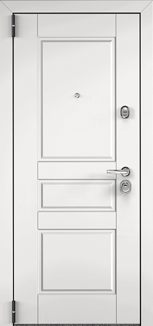 Белая металлическая дверь входная для дома №33 выделяется своим свежим и современным обликом. Универсальный белый цвет делает её уместной как в частном коттедже, так и в квартире или офисе, визуально добавляя простора и подчеркивая аккуратность фасада или интерьера. Конструкция двери основана на стальном листе толщиной 2 мм и усилена профильными трубами, что гарантирует надежность и устойчивость к нагрузкам. Важная особенность модели — наличие терморазрыва в полотне и коробке: благодаря этому дверь не промерзает в зимний период, исключается конденсат и сохраняется комфорт внутри помещения. Внешняя и внутренняя отделка выполнена из МДФ с ПВХ-покрытием, которое защищает поверхность от влаги и механических повреждений, сохраняя первозданный вид надолго. Два контура уплотнителя обеспечивают герметичность и дополнительную защиту от сквозняков. Эта дверь удачно сочетает эстетику и практичность, создавая надежный вход в любое жилище. Белая металлическая дверь входная для дома №33 от производителя: быстрое изготовление и монтаж в Электрогорске, индивидуальные размеры, широкий выбор материалов и фурнитуры, официальная гарантия до 10 лет.