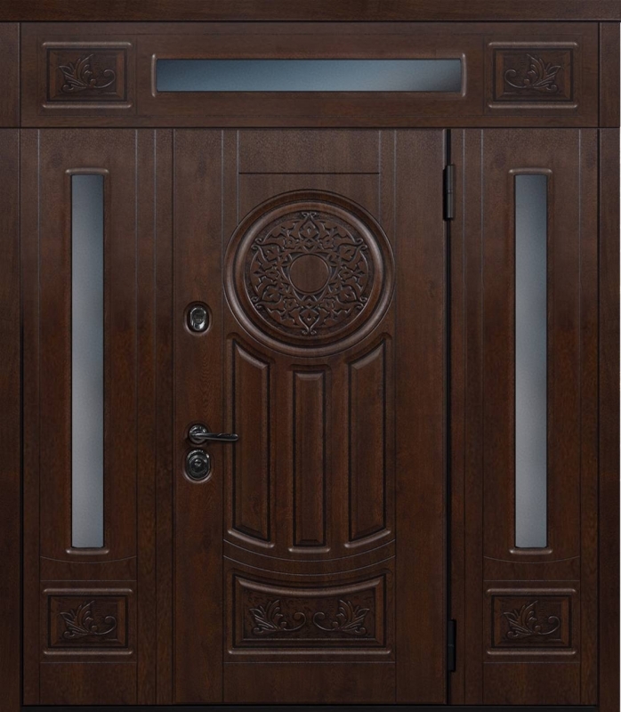 Эта нестандартная парадная дверь с фрамугой №6 — отличный выбор для тех, кто ценит элегантность и долговечность. Внешняя и внутренняя отделка из МДФ придает дверям стильный и современный вид, а также защиту от механических повреждений. МДФ устойчива к царапинам и вмятинам, что делает дверь идеальной для долгосрочной эксплуатации. Каркас из профильной трубы 50х25 мм и лист металла толщиной 2 мм обеспечивают прочность и надежность, а ребра жесткости из профильных труб гарантируют дополнительную устойчивость. В двери установлены блокираторы, два контура уплотнителей из резины, что повышает звуко- и теплоизоляцию. Замки от известных производителей, таких как Просам и Мосрентген, обеспечат надежную защиту. Возможность комбинировать отделку, добавлять зеркало, стеклопакет или кованые элементы позволяет легко адаптировать дверь под любые предпочтения. Нестандартная парадная дверь с фрамугой №6 от производителя: быстрое изготовление и монтаж в Электрогорске, индивидуальные размеры, широкий выбор материалов и фурнитуры, официальная гарантия до 10 лет.