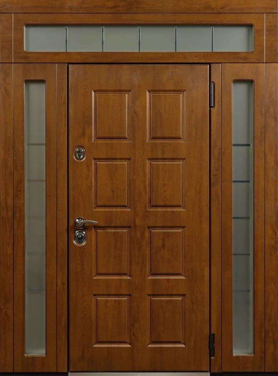 Элитная парадная дверь с фрамугой №4 станет не только защитой вашего дома, но и его визитной карточкой. Ее внешний вид, сочетающий плиту МДФ с ПВХ-покрытием, выглядит современно и гармонично, сохраняя стойкость к внешним воздействиям, таким как царапины и вмятины. Конструкция, выполненная из профильной трубы 50х25 мм и металлического листа толщиной 2 мм, гарантирует долговечность и прочность. Благодаря фрамуге дверь пропускает свет, добавляя пространству легкости. Встроенные замки с ригелями обеспечивают надежную защиту. Возможность выбора направления открывания и комбинирования отделок делает эту модель универсальной для любых интерьеров. Также можно дополнить дверное полотно зеркалом или стеклопакетом, а если требуется, заменить замки на более высокозащищенные модели. Элитная парадная дверь с фрамугой №4 от производителя: быстрое изготовление и монтаж в Электрогорске, индивидуальные размеры, широкий выбор материалов и фурнитуры, официальная гарантия до 10 лет.