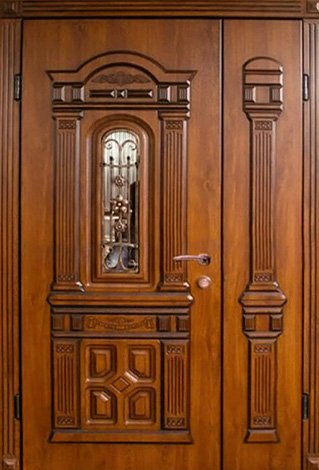 Арочная двустворчатая входная со стеклом дверь №32