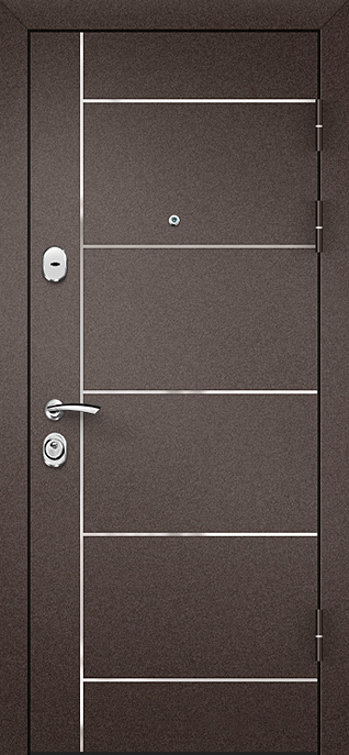 Каркас из профильной трубы и стальной лист толщиной 2 мм обеспечивают прочность конструкции и устойчивость к взлому, а два контура уплотнителей защищают помещение от сквозняков и уличного шума. Входная дверь в квартиру с зеркалом №10 выделяется сочетанием практичного молоткового напыления снаружи и аккуратной плиты МДФ внутри. Такое покрытие не боится механических повреждений и перепадов температуры, долго сохраняя первоначальный вид. Зеркало на внутренней стороне делает прихожую светлее и визуально просторнее, заменяя полноценное настенное. Дополнительные блокираторы и система ребер жёсткости усиливают надежность. Возможность изготовления в любых размерах позволяет адаптировать модель под особенности квартиры, офиса или частного дома, сохранив баланс между эстетикой и безопасностью. Входная дверь в квартиру с зеркалом №10 от производителя: быстрое изготовление и монтаж в Электрогорске, индивидуальные размеры, широкий выбор материалов и фурнитуры, официальная гарантия до 10 лет.