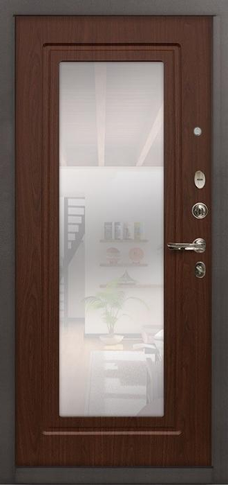 Входная дверь с зеркальными вставками №56 сочетает надежность металлической конструкции и удобство функционального декора. Зеркало не только украшает интерьер, но и делает помещение визуально просторнее, что особенно ценно для квартир и офисов. Для частного дома такая дверь добавляет практичности — всегда можно взглянуть на отражение, выходя на улицу. Отделка выполнена из панелей МДФ с ПВХ-покрытием, устойчивым к царапинам и мелким повреждениям, что обеспечивает долговечность и сохранение первоначального вида. Каркас собран из профильной трубы, усилен рёбрами жёсткости и металлическим листом толщиной 2 мм, благодаря чему дверь выдерживает серьёзные нагрузки и обеспечивает защиту от взлома. Два контура уплотнения препятствуют проникновению сквозняков и пыли, а резиновый уплотнитель сохраняет плотное прилегание полотна. Замковая система включает надежные российские механизмы Просам и Мосрентген, которые отличаются стабильной работой и высоким ресурсом. Дверь №56 — это прочность, удобство и современный дизайн в одной конструкции. Входная дверь с зеркальными вставками №56 от производителя: быстрое изготовление и монтаж в Электрогорске, индивидуальные размеры, широкий выбор материалов и фурнитуры, официальная гарантия до 10 лет.