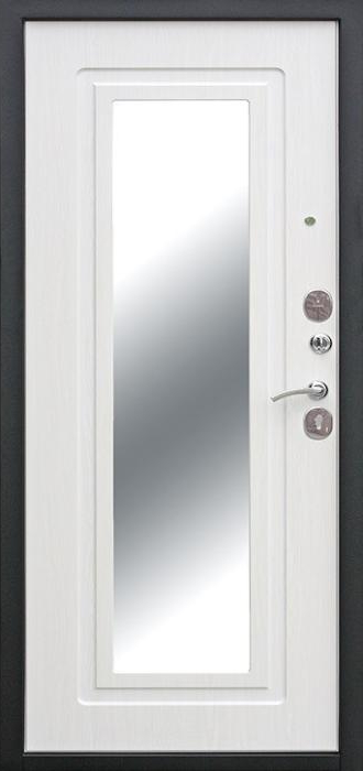 Железная дверь входная в квартиру с зеркалом №68 сочетает в себе надежность металла и практичность продуманного дизайна. Снаружи она покрыта молотковым напылением, известным своей устойчивостью к сколам и царапинам, а также способностью долго сохранять аккуратный внешний вид даже при активной эксплуатации. Внутренняя сторона оформлена накладкой из МДФ, что делает её гармоничным элементом интерьера и добавляет уюта. Встроенное зеркало не только удобно в повседневной жизни, но и визуально расширяет пространство прихожей. Основа конструкции выполнена из профильных труб с листом стали толщиной 2 мм, что гарантирует прочность и долговечность. Два контура уплотнения защищают от сквозняков и уличного шума, а наличие терморазрыва в коробке и полотне препятствует промерзанию в холодное время года. Такая дверь станет надежным и функциональным решением для квартиры, офиса или загородного дома. Железная дверь входная в квартиру с зеркалом №68 от производителя: быстрое изготовление и монтаж в Электрогорске, индивидуальные размеры, широкий выбор материалов и фурнитуры, официальная гарантия до 10 лет.