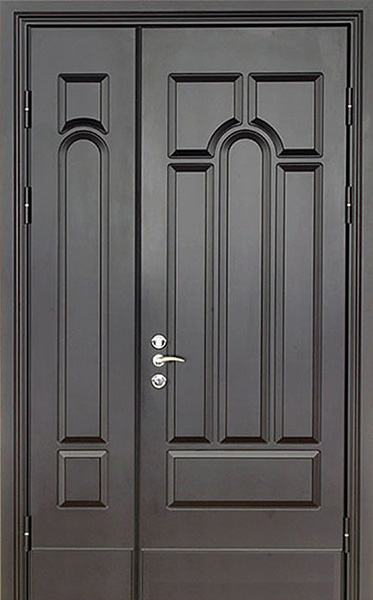 Металлическая двухстворчатая дверь для дома цвета графит №27 – это стильное и надежное решение для вашего жилья. Внешняя и внутренняя отделка выполнены из МДФ, что придает двери изысканный вид и увеличивает её стойкость к механическим повреждениям. Цвет графит придаёт двери современный и элегантный оттенок, который легко впишется в интерьер как частных домов, так и современных офисов. Металлическая двухстворчатая дверь для дома цвета графит №27 от производителя: быстрое изготовление и монтаж в Электрогорске, индивидуальные размеры, широкий выбор материалов и фурнитуры, официальная гарантия до 10 лет.