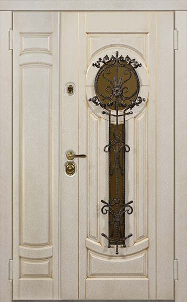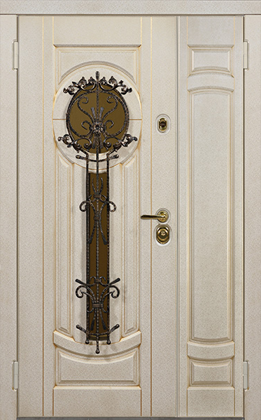 Двухстворчатая парадная дверь с ковкой и стеклом белая №30 — это сочетание красоты и надёжности. Конструкция из профильной трубы 50х25 мм и металлического листа толщиной 2 мм обеспечивает долговечность и стойкость к внешним воздействиям. Элементы ковки придают двери изысканный вид, а стеклопакет позволяет создать атмосферу лёгкости и прозрачности. Внешняя и внутренняя отделка выполнены из плиты МДФ, что делает дверь не только привлекательной, но и устойчивой к механическим повреждениям. Для дополнительной герметичности используются уплотнители с двумя контурами, а блокираторы обеспечат безопасность. Вариативность размеров и возможность добавления дополнительных опций, таких как шумо- и теплоизоляция, делают эту модель универсальной для установки в любом интерьере. Двухстворчатая парадная дверь с ковкой и стеклом белая №30 от производителя: быстрое изготовление и монтаж в Электрогорске, индивидуальные размеры, широкий выбор материалов и фурнитуры, официальная гарантия до 10 лет.