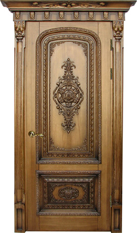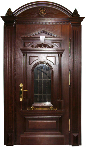 Эксклюзивная глянцевая дверь в частный дом с нестандартной фрезеровкой №24