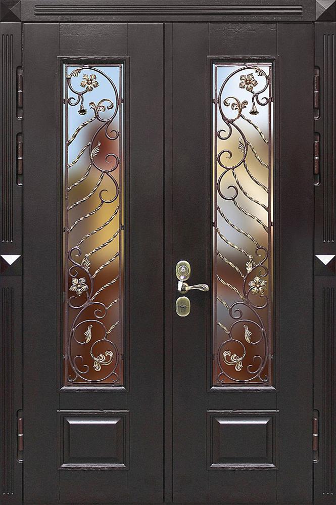 Морозостойкая дверь в широкий проем с глухим полотном стеклом и ковкой №30