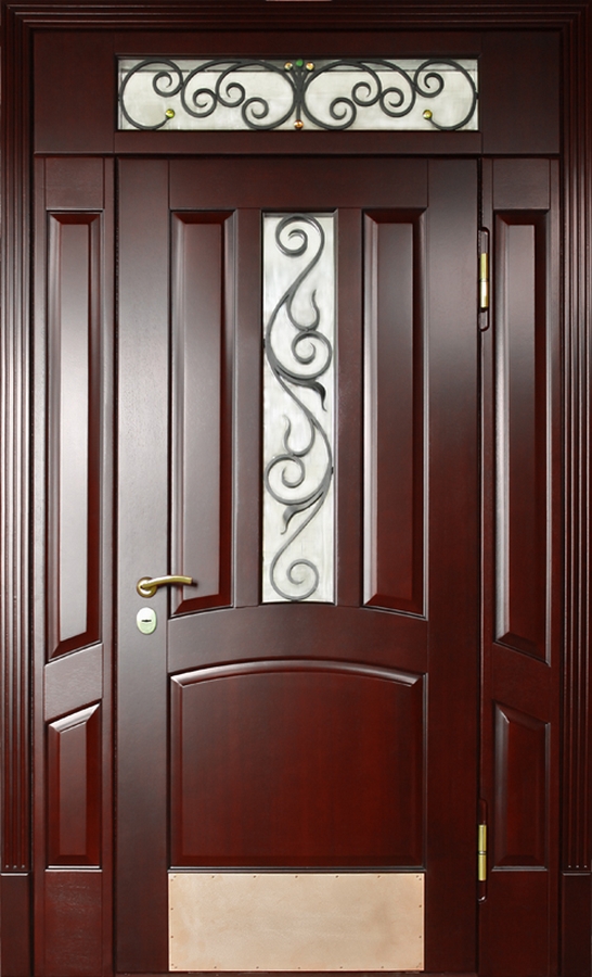 Красивая шпонированная дверь с надежной фурнитурой и ковкой "лоза" №33 идеально дополнит интерьер вашего частного дома или коттеджа. Внешняя и внутренняя отделка выполнены из натурального дерева, что придает двери элегантность и стиль. Профильная труба 50х25 мм используется для каркаса и полотна, а лист металла толщиной 2 мм и ребра жесткости из профильных труб 40х25 мм обеспечивают прочность и долговечность. Несмотря на отсутствие терморазрыва, дверь гарантирует надежную защиту и теплоизоляцию благодаря двум контурам уплотнения. Элементы ковки "лоза" придают двери особое очарование, сочетая практичность с эстетикой. Эта дверь — идеальный выбор для тех, кто ценит стиль, качество и безопасность. Красивая шпонированная дверь с надежной фурнитурой и ковкой "лоза" №33 от производителя: быстрое изготовление и монтаж в Электрогорске, индивидуальные размеры, широкий выбор материалов и фурнитуры, официальная гарантия до 10 лет.